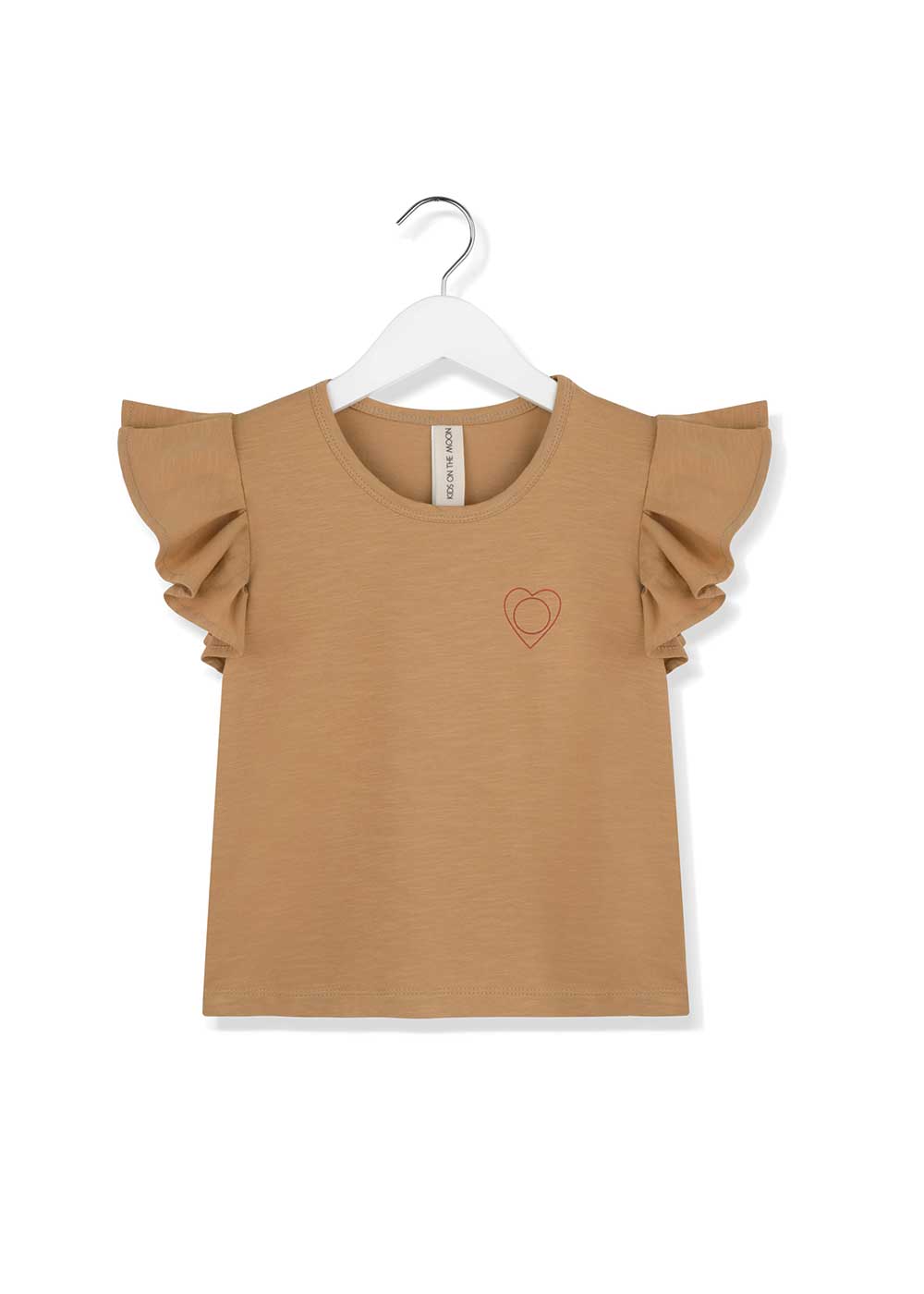 Jersey top with ruffled sleeves and a heart print.