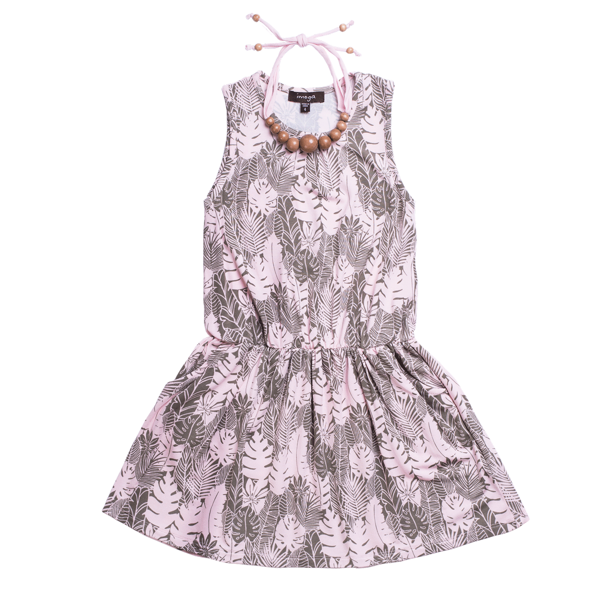 Leaf printed jersey dress with an elasticated waist and matching necklace.