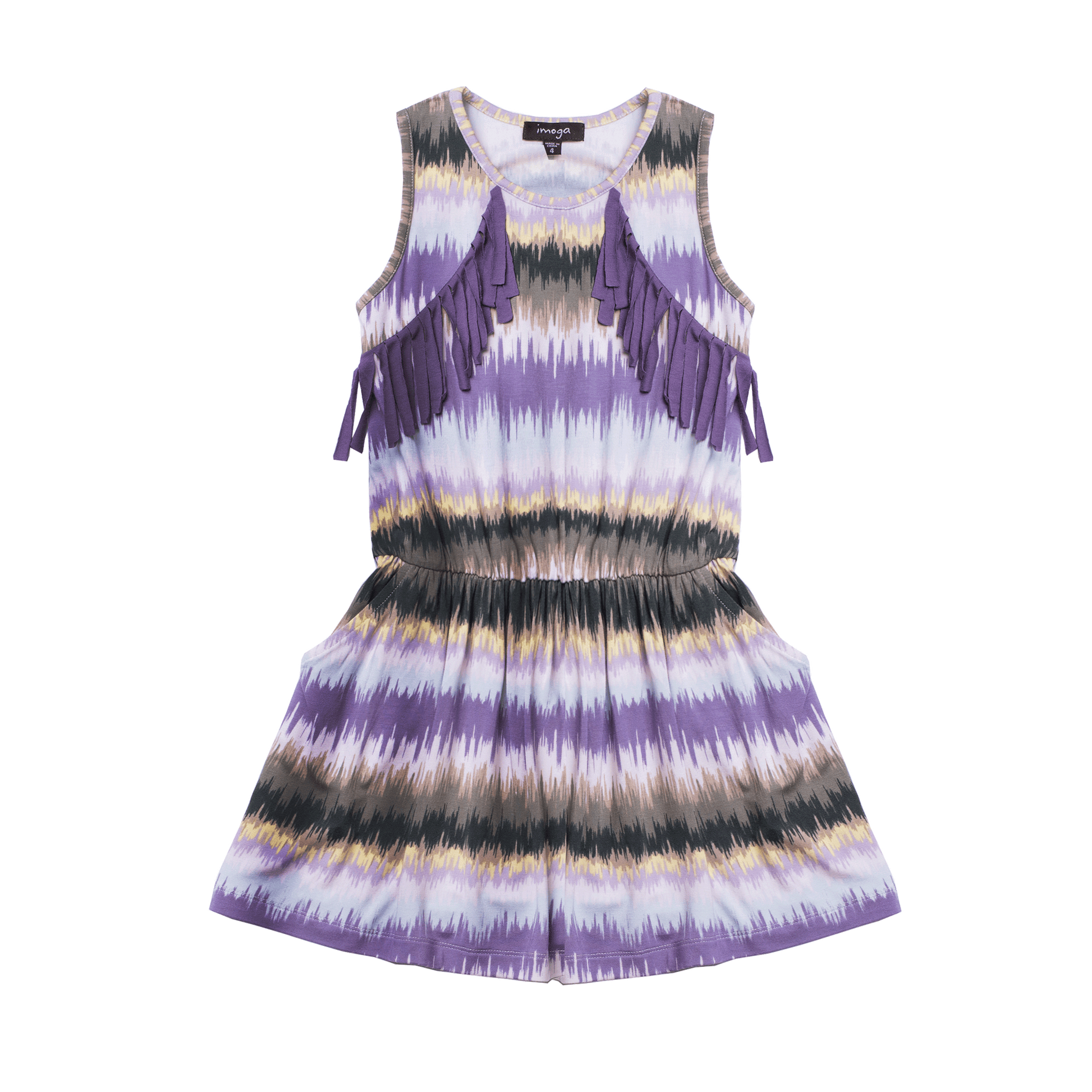 Printed jersey dress with a fringe detail and an elasticated waistband.