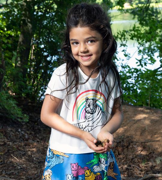 Featuring an artful yet realistic panda graphic on top and a colorful print on the bottom this dress is equal parts casual and cool. Made from soft, organic cotton this comfortable dress is one this little kid will want to live in .